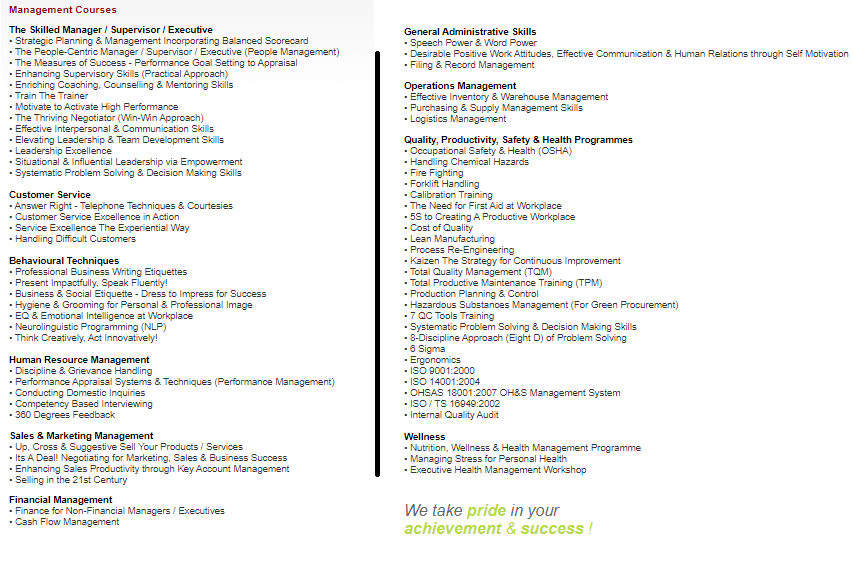 GlobalTNA offers a wide range of public workshop courses on specialized topics ranging from our own Exclusive Licensed Programmes to Management Courses including Technical, Digitalization, Human Resource, Sales and Marketing as well as Experiential Leadership Development Series